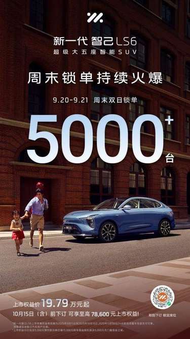新一代智己LS6共推出9大版本,上市权益价19.79万元~26.99万元。自发布以来,市场反响热烈:上市当晚,仅27分钟大定突破10,000台;9月20日~21日周末双日锁单破5,000台;门店试驾持续爆满,热度不减,“20万级最强爆品”态势尽显。
