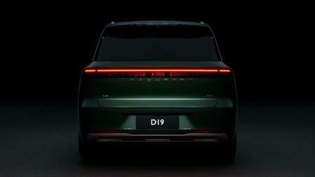光影是零跑D19传递情感的重要载体。“悦动晶体”三段式贯穿灯作为家族DNA进化符号,以晶体般的三段光源象征纯粹、创新与温度,同时,灯组融合有辅助驾驶小蓝灯,兼具实用与仪式感。前大灯采用“数字时钟”设计语言,圆润方形造型搭配百万像素DLP投影、ADB智能照明等功能,科技感与仪式感兼备;车尾“海平线”尾灯灵感源自海平面光带,将功能灯组一体化收束,呈现纯粹视觉张力。