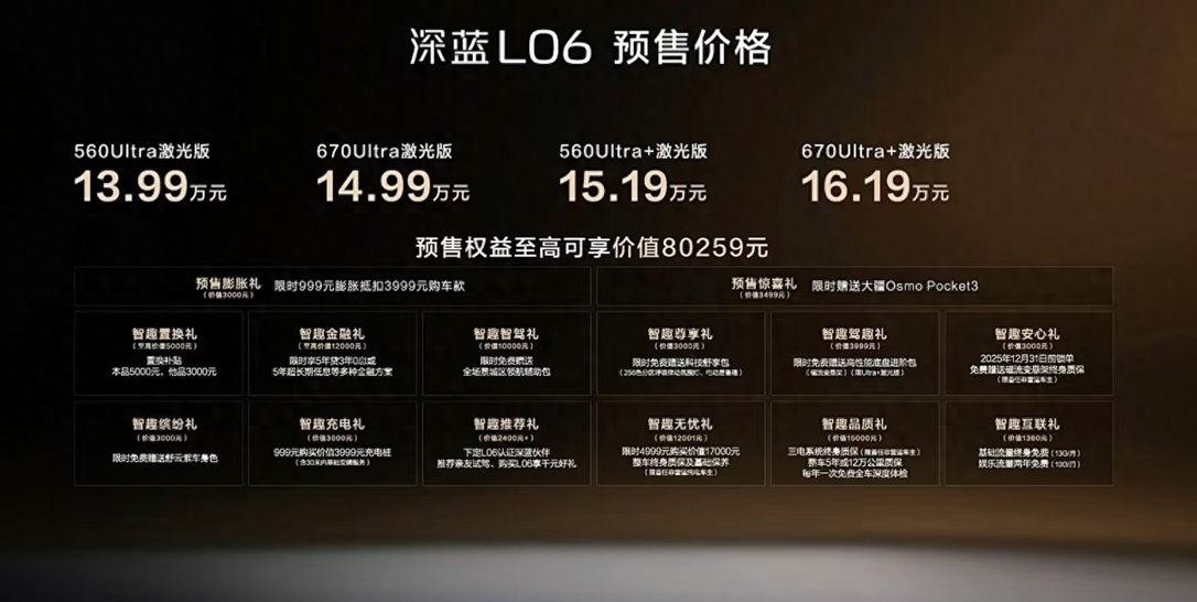 在比亚迪海豹06 EV、秦L EV等竞品仍在比拼基础配置时,深蓝L06以“超跑悬架+顶级芯片+全系智驾”的组合拳,重新定义了15万级纯电轿车的价值标杆。它用实际行动证明:高品质不一定高价格,主流价位也能享受到越级体验。对于追求操控、智能与安全的家庭用户而言,深蓝L06无疑是2025年底最值得期待的纯电新车。