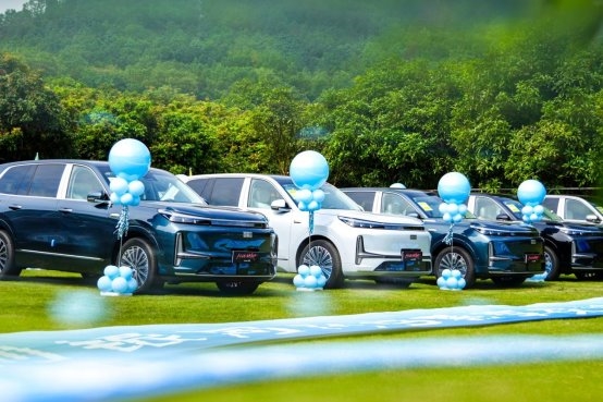 仪式最后,车主与嘉宾共同完成车阵合影。整齐排列的吉利银河M9在鹏城阳光下熠熠生辉,象征着科技创新与美好生活的汇聚,成为深圳城市中一道闪耀的风景线。
