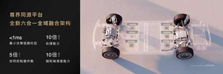 以智能驾驭性能,新款享界S9升级全新一代华为途灵平台,让豪华更从容。新车采用前独立双叉臂,后五连杆悬架设计,标配5档可调的智能空气悬架,全新连续可变阻尼减振器,操控与舒适兼得,机械质感媲美百万豪车;升级尊界同源的全新六合一全域融合架构,决策时间更短,调度能力更强,搭配华为乾崑智驾ADS 4、时空智能悬架网络、HUAWEI XMOTION Control智能车身协同控制及HUAWEI DATS动态自适应扭矩控制等多项技术的协同配合,如同赋予了新款享界S9底盘“明亮的眼睛”、“聪明的大脑”以及“强壮敏捷的四肢”。在出行中,车辆提前路况预瞄,路况空间模型分辨率提升100倍[10],并通过高效智能思考,精细化协同控制,紧急避障精准操控、颠簸路、坑洼路游刃有余。在中汽中心麋鹿测试中,更是取得了84.1km/h[11]的优势成绩,为用户带来颠覆性的操控性能。