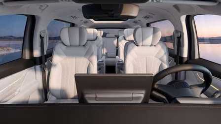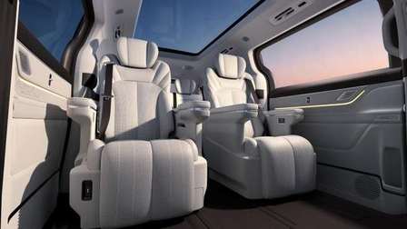 银河V900整车尺寸5360mm×1998mm×1920mm,轴距3200mm,凭借8.41㎡的超大车内有效面积和3974mm的超长车内有效长度,实现91.8%同级第一得房率,车内宽度和高度更是分别达到1645mm和1334mm,以“豪华大平层”格局彻底告别空间焦虑。