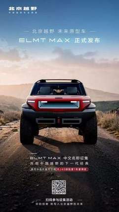 北京越野的愿景要和用户一起携手创造。即刻起至2026年3月20日,所有人均可参与ELMT Max未来原型车中文名称共创活动,最终中选方案可获得BJ40探险家一年使用权。