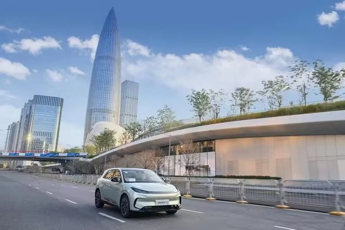 深踩电门时,电动机265N·m的峰值扭矩瞬间释放,推背感明显但不突兀,超车并线一气呵成。底盘质感是最大惊喜。前麦弗逊+后扭力梁的悬挂调校得很有"德味",扎实沉稳。过减速带时"砰砰"两声干净利落,没有多余晃动。