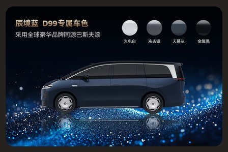 在色彩设计上,零跑D99坚持“自然共生”理念,雕琢出五款意境悠远的豪华外观色,赋予车辆独特的视觉灵魂。其中,“辰境蓝”为零跑D99的专属色,静止时呈现沉稳克制的绅士气质,驰骋在阳光下则会唤醒细腻珠光,折射出年轻灵动的气息。为呈现这种高级质感,零跑选用顶级豪华品牌同款的巴斯夫车漆,让颜色更通透、层次更丰富,且光泽持久不易失色。此外,光电白的纯粹冷峻、液态银的温暖优雅、天幕灰的深邃莫测与金属黑的低调不凡,五款自然灵感色分别对应不同的审美志趣,让每一台零跑D99都能成为用户个性与气质的延伸。