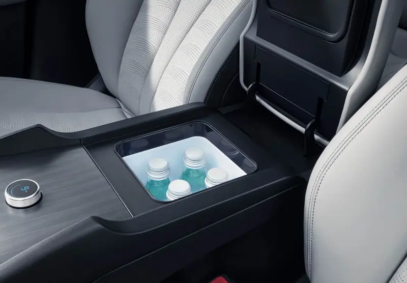 在座舱内部,新车致力于打造更具品质感的移动空间。分体式超感座椅支持主驾8向电动调节、副驾4向电动调节,具备通风/加热功能;冷暖两用车载冰箱可设置的温度范围分别为-6~15℃以及35~50℃,无论冷饮还是热食皆随时可得;可开启式全景天窗则带来更为开阔的车内视野和空间感;此外,前排化妆镜照明灯、50W手机无线充电、二排带杯托中央扶手、多色氛围灯及新增的三种场景模式,共同营造出沉浸式的舒享氛围。