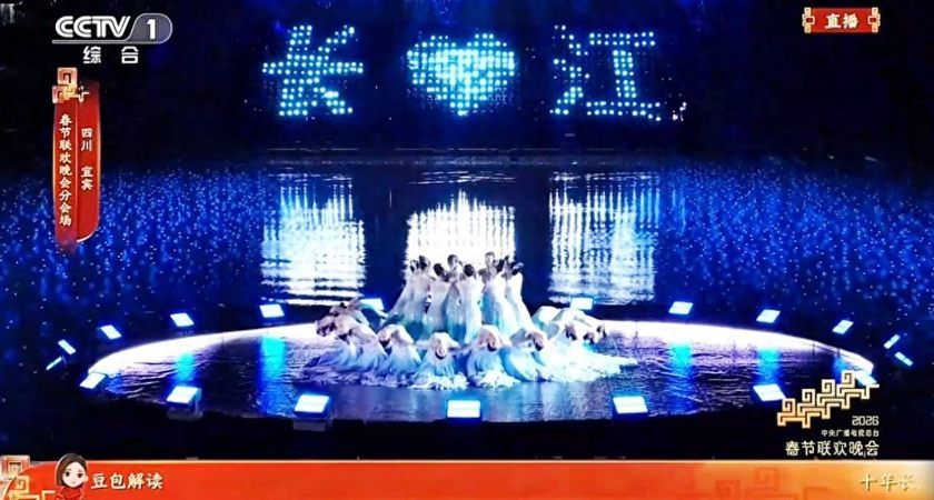 水上机场作为迪丽热巴舞蹈表演的核心舞台,将科技基建与艺术表演深度结合,让舞蹈艺术在长江的自然意境与科技的未来感中绽放光彩。在表演中,水上机场平稳停靠于江面,与粼粼江水相映成趣,成为宜宾分会场极具辨识度的视觉亮点,也让全球观众直观感受到低空科技的创新形态。