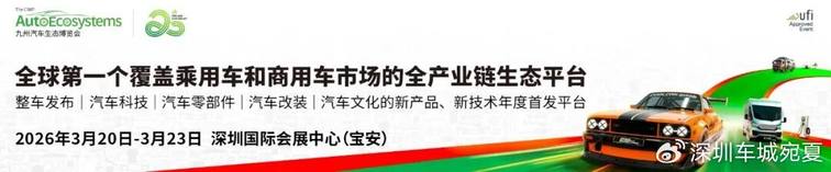 2026深圳国际智慧出行、汽车改装及汽车服务业生态博览会(简称:九州汽车生态博览会)将于3月20日-3月23日在深圳国际会展中心(宝安)盛大启幕。本届展会室内外展览规模60万平方米,是全球汽车产业链的重要盛会。吸引了来自全球120家汽车品牌与7000家汽车产业链品牌齐聚亮相,覆盖33个展品品类,是全球第一个覆盖乘用车和商用车市场,囊括整车发布、汽车科技、汽车零部件、汽车改装、汽车文化的全产业链生态平台。