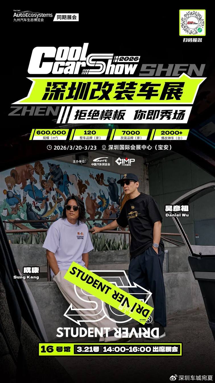 3月21日16号馆现场,STUDENT DRIVER的主理人吴彦祖和成康与粉丝零距离互动,分享他们的玩车故事、改装旅程与真实体验,现场更有DRIFTER电影中成康的座驾Lola在中国首发。