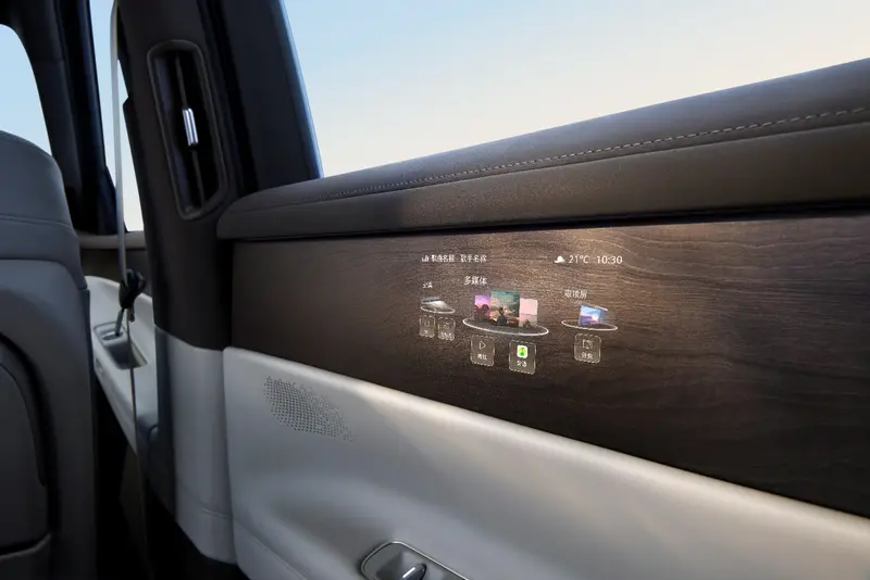 座舱内实现九屏联动,包括前排15.6英寸中控双联屏,后排21.4英寸吸顶屏以及3块Smart Surface魔术屏等。其中Smart Surface魔术屏平时隐匿于木纹内饰,需用时自动唤醒,后排门板魔术屏可显示侧后方路况,避免“开门杀”;吸顶屏可跟随二排座椅角度调节,无论坐姿还是躺姿,都能获得舒适观影体验。智能WHUD可自动追踪驾驶者眼球位置并调整投影,适配不同身高驾驶者;“大众精灵”支持语音与手势交互,让出行更加轻松有趣。此外,首发ERA SOUND音响系统,带来沉浸式驾乘体验。