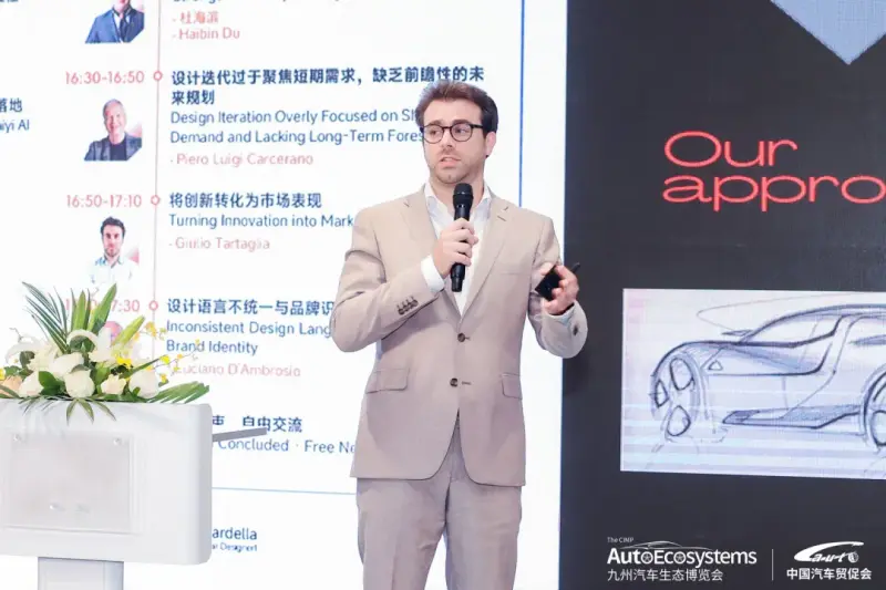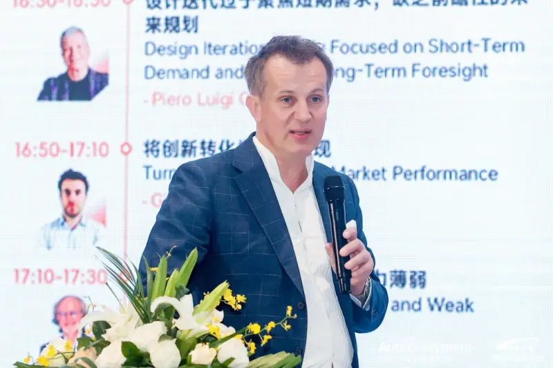 Piero Luigi Carcerano先生在《设计迭代过于聚焦短期需求,缺乏前瞻性的未来规划》的主题演讲中认为:“以前的汽车设计更重外形与象征,如今技术、城市、AI 深刻改变汽车。未来设计需融合城市系统、人机交互、人体工学与文化差异,中国是重要创新参照。设计师需跨学科学习,拥抱变革,以创新思维构建未来出行生态。”